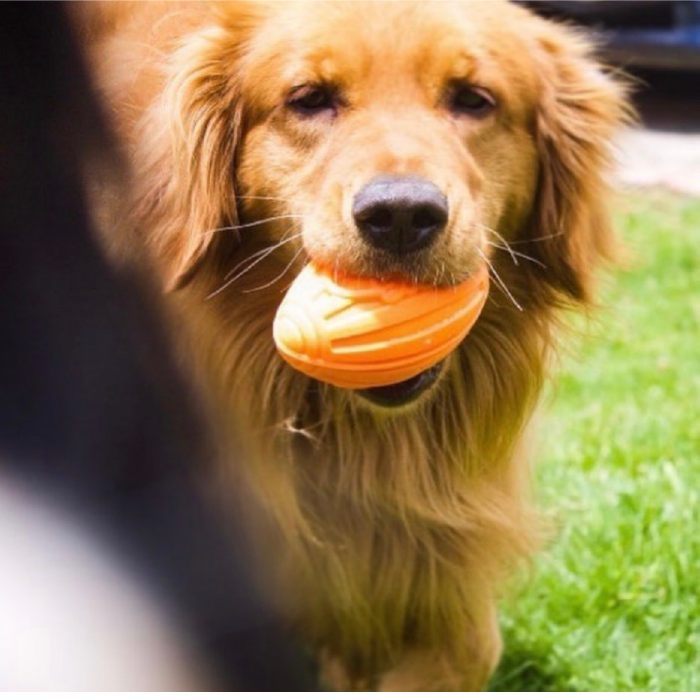 $ 20.000Pelota con forma de futbol americano, mediana, en caucho flexible y pelota de tennis en su interior; ideal para peludos juguetones, a los que les gusta jugar a atrapar pelotas, morder diferentes texturas y hacer sonar sus juguetes; por su textura ayuda también a limpiar los dientes del peludo y fortalece sus mandíbulas. Material liviano, altamente resistente, fácil de limpiar.