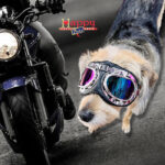 Gafas para perros pequeños con protección UV, lente oscuro para proteger del Sol, correas elásticas graduables para ajustar alrededor de la cabeza y por debajo del hocico, bordes interiores suaves y acolchonados que reducen la presión sobre los ojos y la cara, marco plegable en la parte central para mayor durabilidad y comodidad.