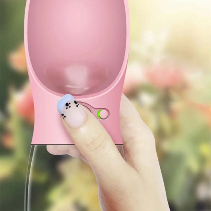 Botilito automático, con platico en un extremo, para llevar el agua de tu peludo a todas partes y poder servirle en el mismo platico que viene adjunto. Al activar el botón deja pasar el agua para llenar el plato y al moverlo nuevamente detiene el flujo, para poder darle de beber al perro, al terminar de beber se puede mover de nuevo el botón y el agua ingresara nuevamente al interior de la botella para evitar desperdiciar el agua. El botón bloquea o permite el paso del agua. Compacto y fácil de llevar sin que ocupe mucho espacio.
