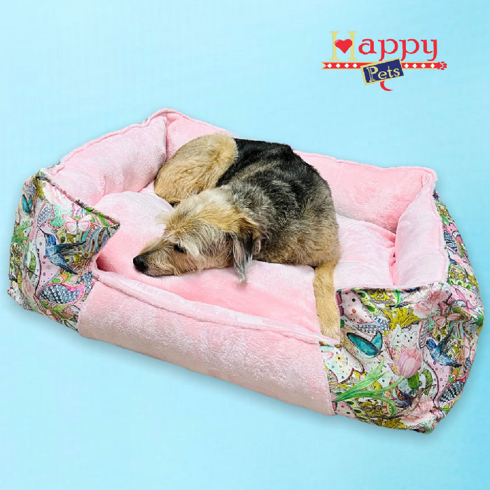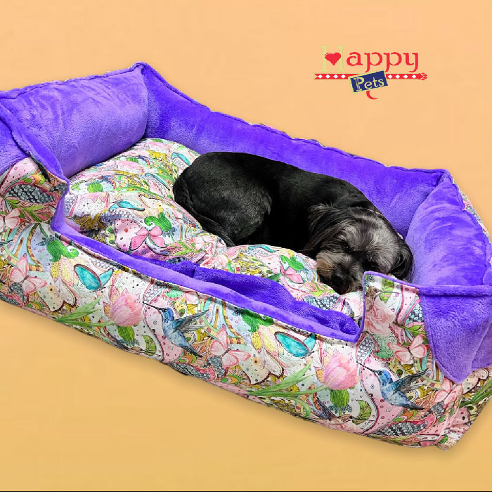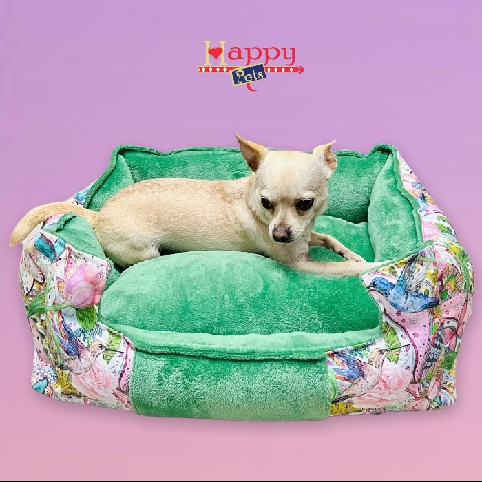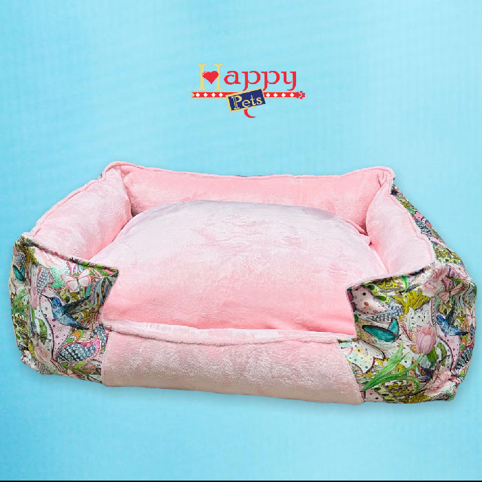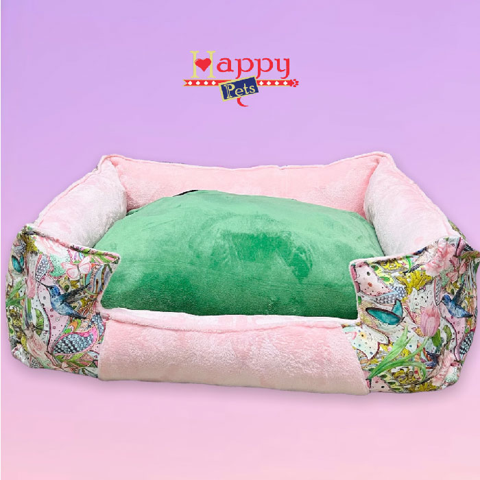 Cama rectangular super abullonada, con la parte exterior en Lona gruesa, resistente, de excelente calidad, con diseño de Colibríes en colores pastel y la interior en peluche suave y calientico de colores variados; cojín interior en peluche suave super abollonado. Fácil de lavar gracias a su sistema de cremalleras y a que todo el interior con relleno viene con forro. Material grueso antideslizante en la base.