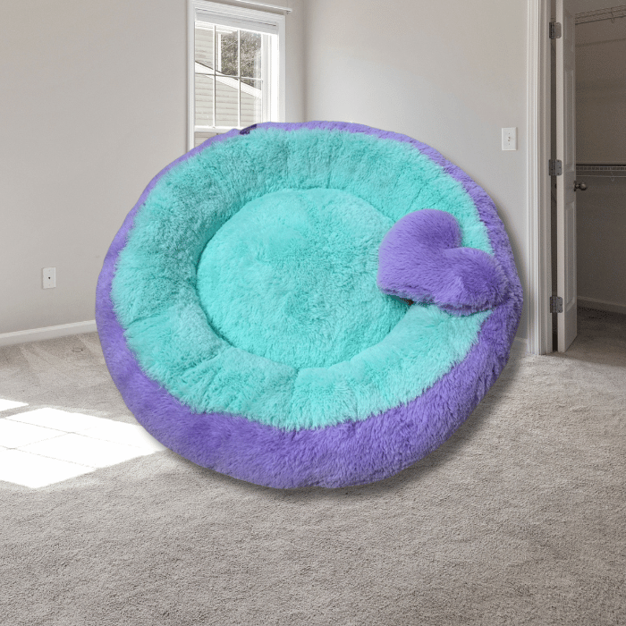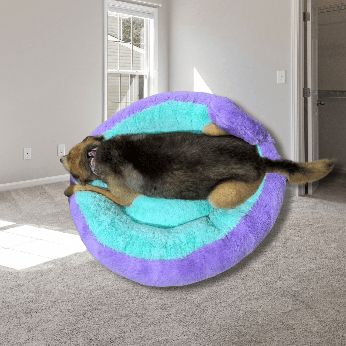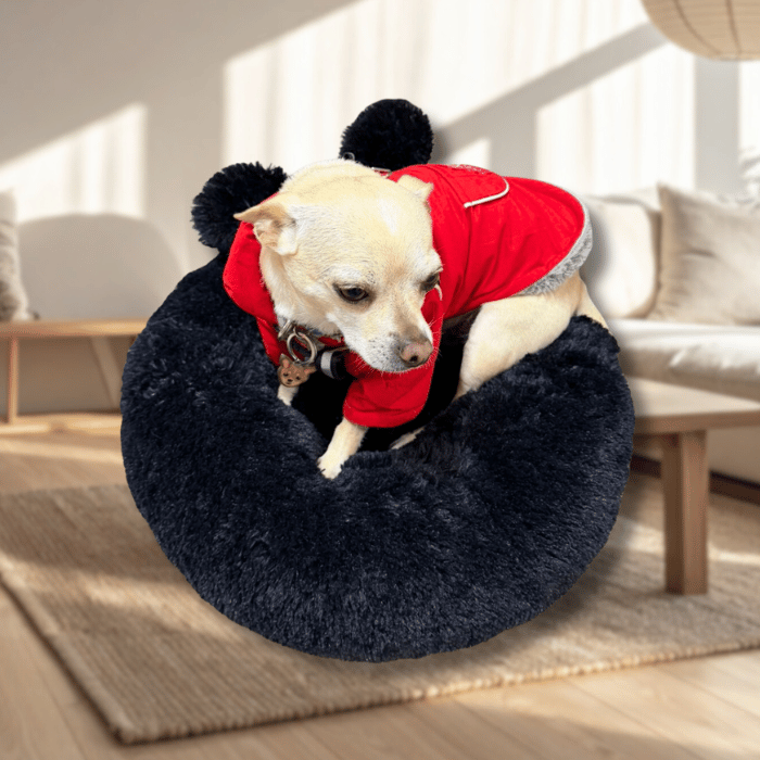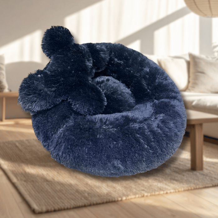 Cama redonda en forma de Dona super abullonada, en peluche suave y largo, con cojín en forma de hueso; una de las camas mas cómodas y cálidas, para que tu peludo duerma plácidamente. Fácil de lavar en lavadora.