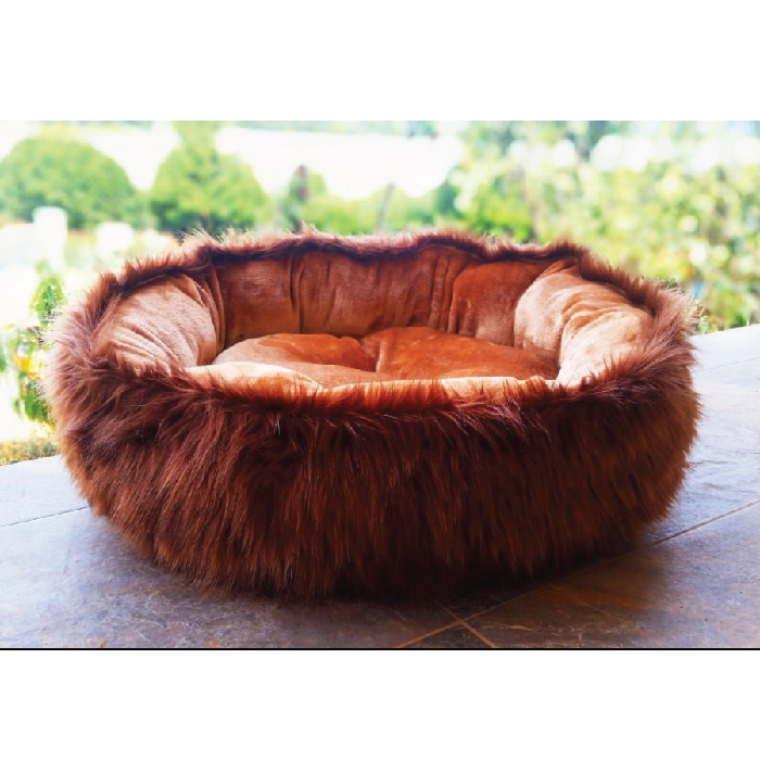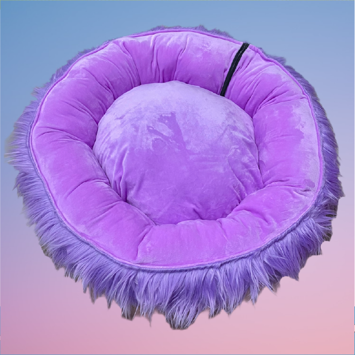 Cama redonda, super peluda en la parte exterior y con peluche corto y suave en la interior, base en Lona gruesa impermeable; es acolchonada, cómoda, suave y calientica. Fácil de lavar gracias a su sistema de cremalleras
