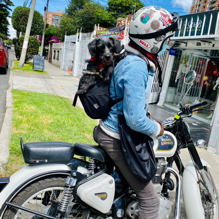 Disponible en talla S y M, solo en color negro igual a las fotos. Ideal para viajes en bicicleta o moto; con el podrás llevar a tu perro a todas partes, incluyendo centros comerciales y lugares donde no pueden tocar el piso.