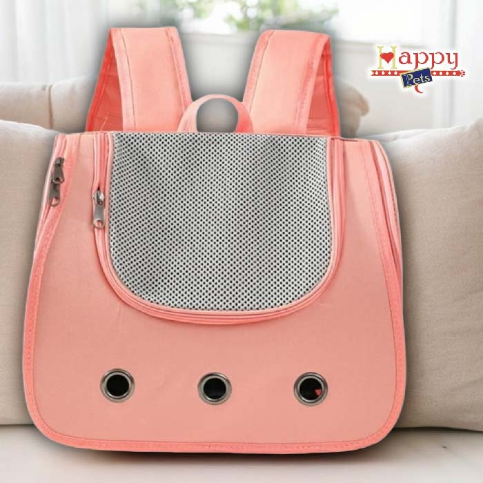 Morral para gatos o perros pequeños, compacto, ligero, que se puede llevar en el pecho o la espalda, con ventana frontal en malla con cremallera, entradas laterales, mallas laterales para mayor ventilación. Material Lona gruesa impermeable reforzada, asas acolchonadas para mayor comodidad y base semirrigida para mayor estabilidad y estructura. Ideal para viajes en moto o bicicleta. Soporta hasta 10 kilos. Apto para cabina de avión.