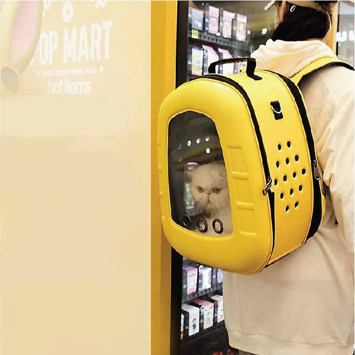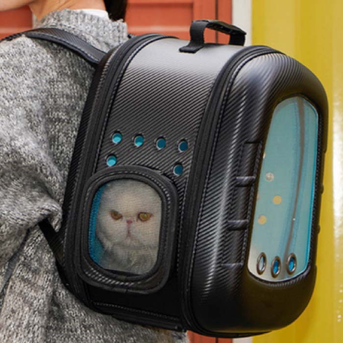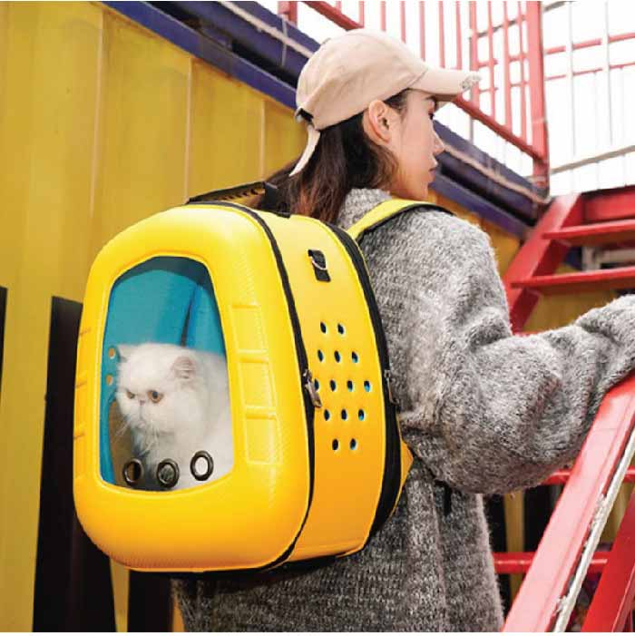 Cargador morral panorámico, que se puede llevar en el pecho o la espalda, con frente transparente acrílica, material grueso impermeable semirigido, cinturón de seguridad, orificios y malla en los laterales para la ventilación, puerta lateral, espaldar y asas acolchadas para mayor comodidad y es desarmadle y plegable para guardarlo con mayor facilidad. Ideal para gatos y perros pequeños y medianitos y para viajar en moto o bicicleta. Soporta hasta 14 kilos.