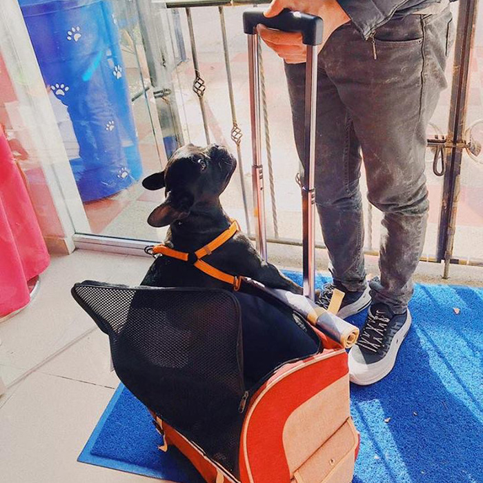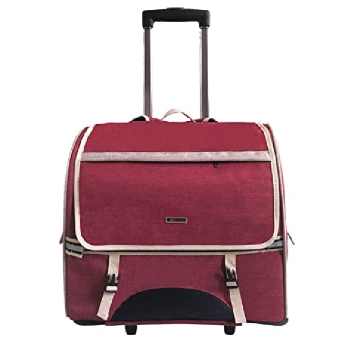Cargador multifuncional, que funciona como morral para llevar en la espalda, coche ya que tiene ruedas y silla de seguridad para el carro, con amplio espacio en malla en la parte frontal, material Lona gruesa impermeable reforzada, 3 ventanas en malla, 2 bolsillos, espaldar y asas acolchadas para mayor comodidad, franja reflectiva delantera, cinturón de seguridad, tapa frontal para resguardar o mantener oculta a la mascota y base rígida para mayor estabilidad; Ideal para gatos y perros pequeños y medianitos. Soporta hasta 15 kilos. Recomendada para viajes en bicicleta y moto.