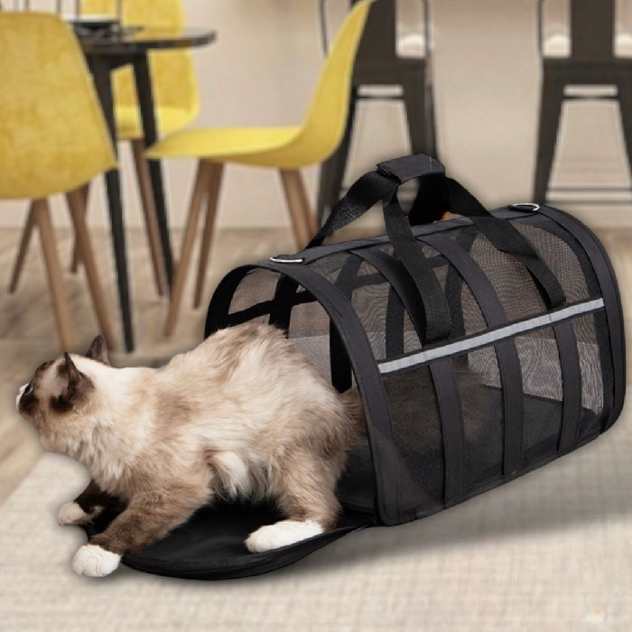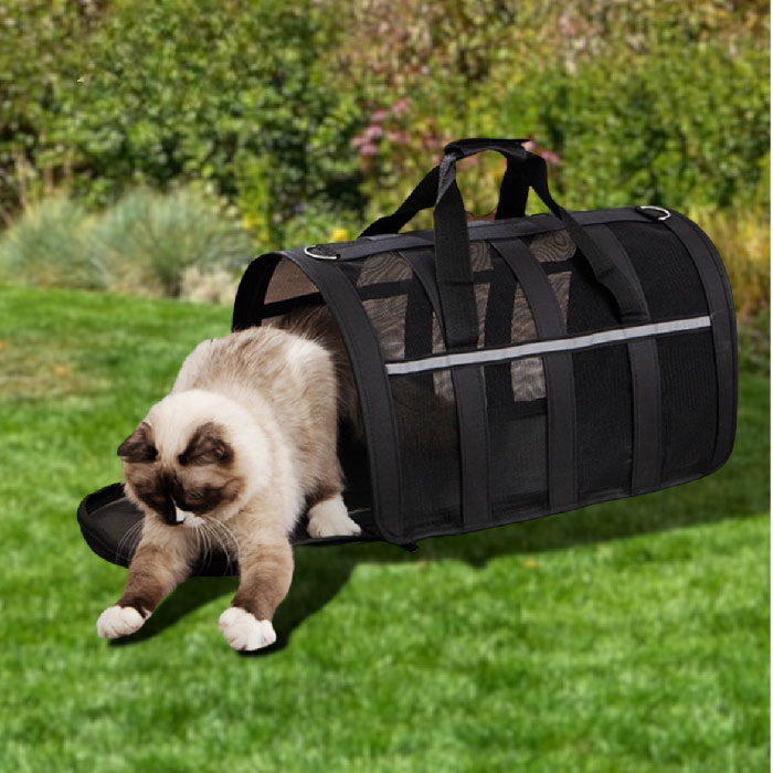 Cargador completamente en malla, con franjas en Lona gruesa impermeable que ayudan a darle estructura y resistencia, permitiendo que se sientan en mayor contacto con el exterior y tengan mucha ventilación, ideal para climas calurosos; cuenta con asas cortas y largas para llevarlo en la mano o el hombro, franja reflectiva horizontal, cinturón de seguridad interior y base semi rígida impermeable para mayor estabilidad. Es totalmente desarmable para guardar con facilidad.