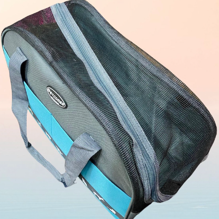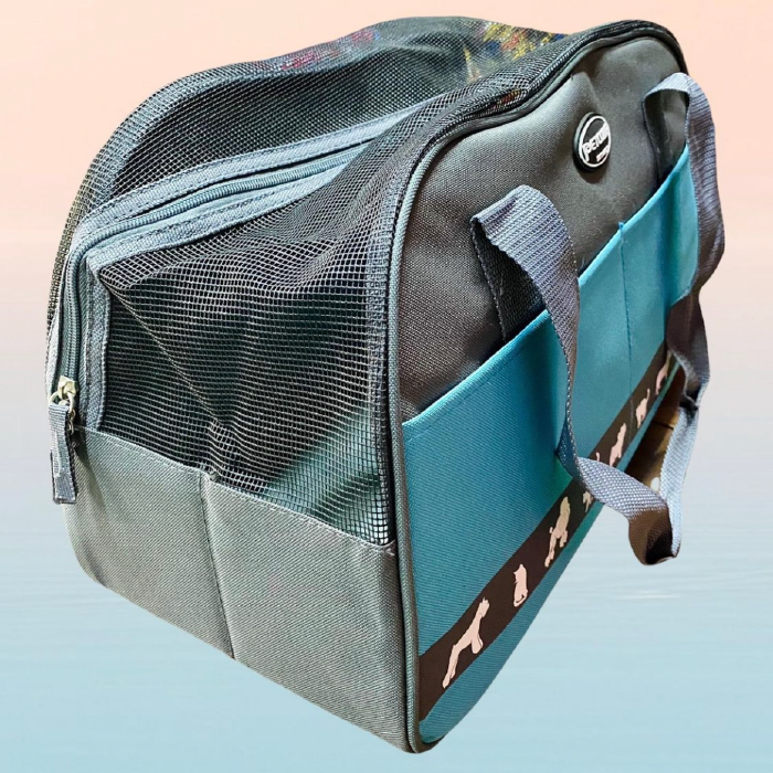 Cargador en Lona gruesa impermeable de alta resistencia, con toda la parte superior en malla para una excelente ventilación y visualización de la mascota, 2 bolsillos, cinturón de seguridad, base semirigida acolchonada para mayor estabilidad y confort. Apto para cabina de avión.