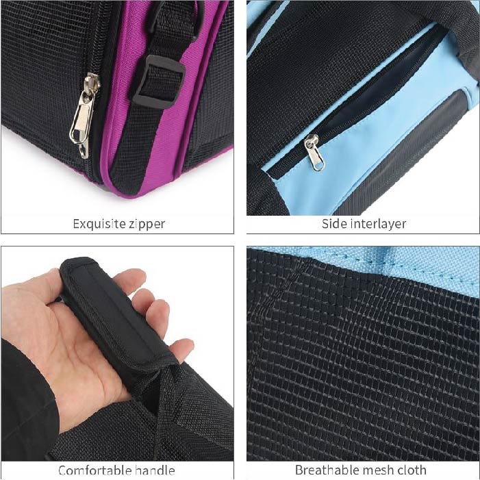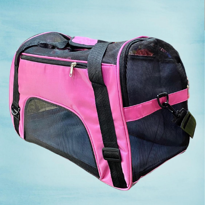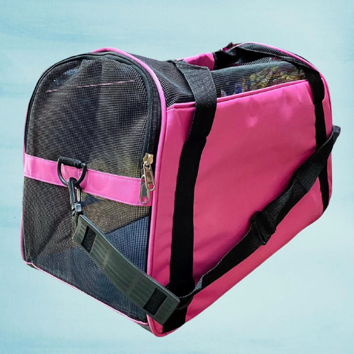 Cargador rectangular en Lona gruesa impermeable de alta resistencia, disponible en 2 tamaños, con 1 bolsillo, 4 amplios espacios de respiración en malla, puerta y ventana laterales, asas cortas y largas, base semirigida para mayor estabilidad y franjas reflectivas. Apto para cabina de avión.