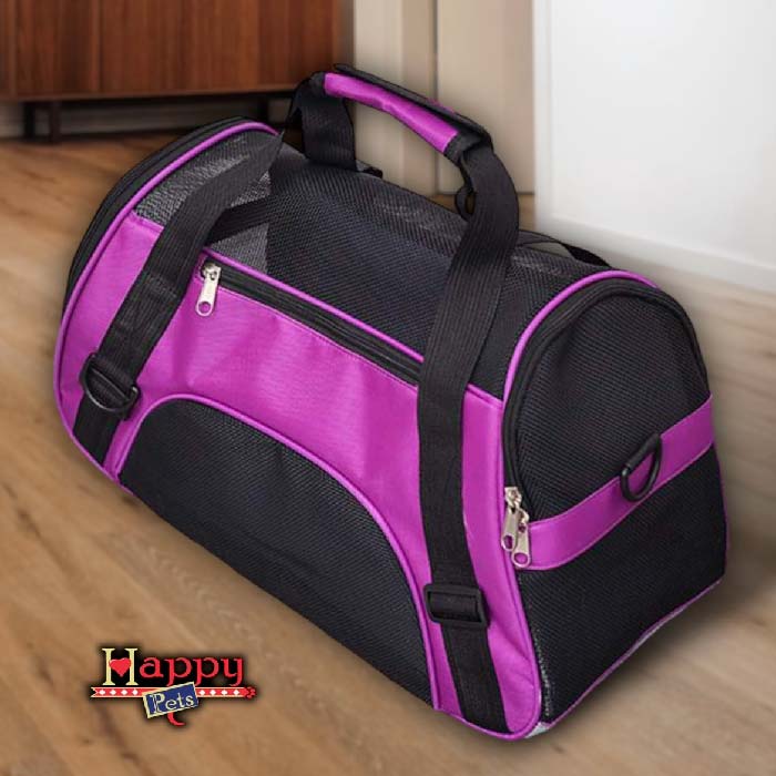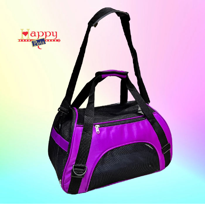 Cargador rectangular en Lona gruesa impermeable de alta resistencia, disponible en 2 tamaños, con 1 bolsillo, 4 amplios espacios de respiración en malla, puerta y ventana laterales, asas cortas y largas, base semirigida para mayor estabilidad y franjas reflectivas. Apto para cabina de avión.