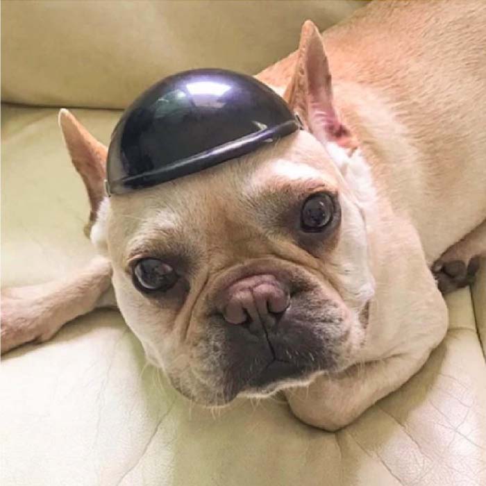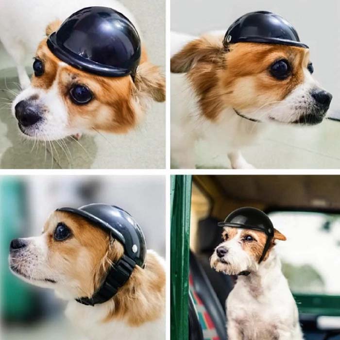 Casco ajustable para mascotas, con orificios en la parte trasera para ventilación y para un mejor ajuste ergonomico, material interior acolchonado para mayor comodidad y amortiguación en caso de golpe y correa ajustable debajo del mentón.
