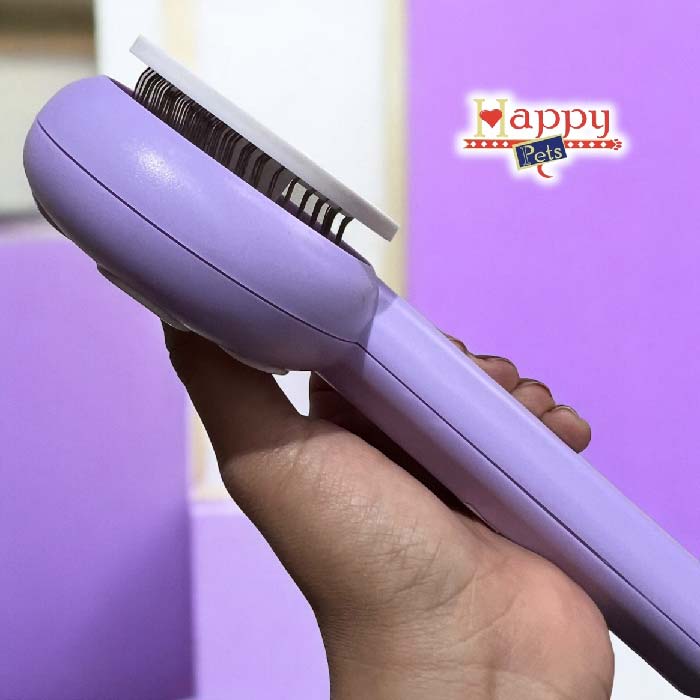 Cepillo redondo con cerdas metálicas delgadas con extremo redondeado, ideal para desenredar y peinar a profundidad especialmente mantos delgados y largos; de limpieza automática ya que cuenta con un botón en el mango en la parte trasera con el que al oprimirlo se mueve la parte frontal del cepillo sacando todos los pelitos que quedaron entre las cerdas después de un cepillado. Muy recomendado para gatos, Yorkies, Shitzu, Maltes, Poodle, etc. Apto para todo tipo de pelajes. Ampliamente usado en las peluquerías para perros y gatos. Material liviano, resistente, fácil de higienizar.