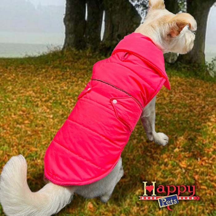 Chaleco impermeable, térmico y acolchonadito, con detalles en el lomo, ideal para mantener protegido a tu peludo en los días fríos y lluviosos.