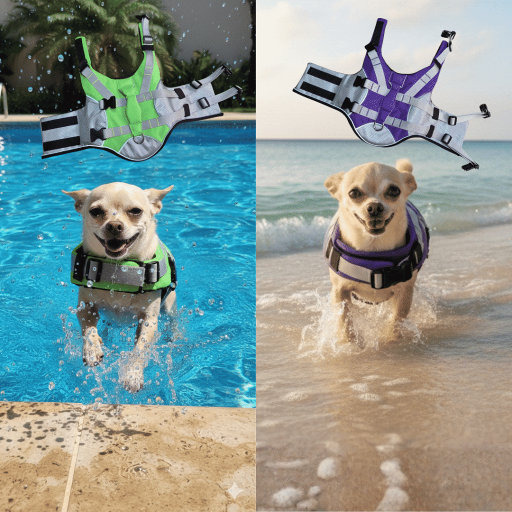 No permitas que la diversión se convierta en un susto inesperado en el agua. Con nuestro chaleco salvavidas, tu mascota flotará con total seguridad mientras disfruta del sol contigo.