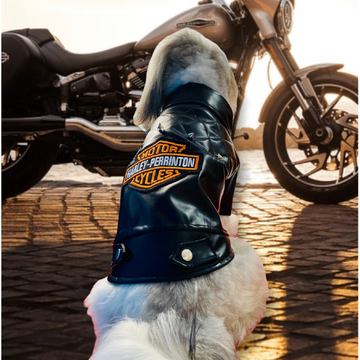 Chaqueta Harley Perrinton, en Cuero Sintético, con detalles como taches y parches moteros. Con diseño ergonómico, que no permite que ensucien su ropita a la hora de ir al baño.