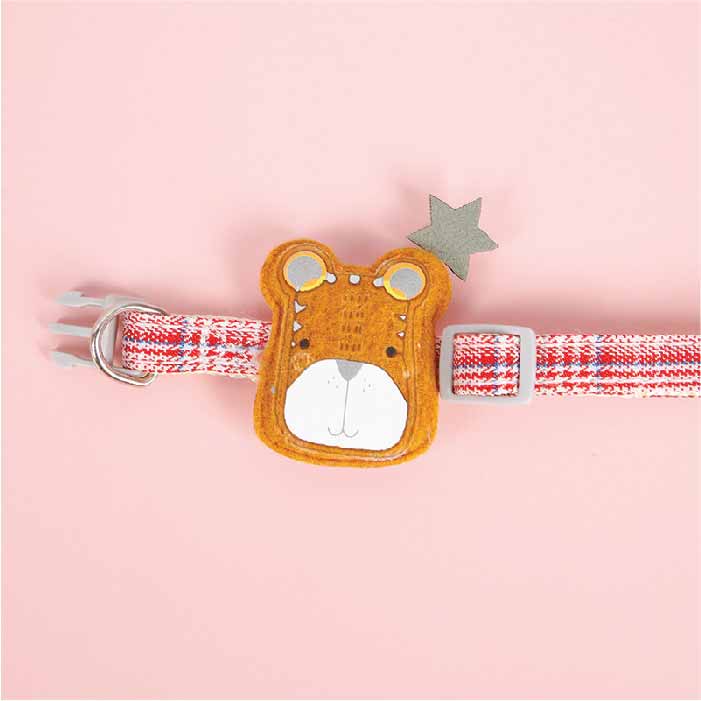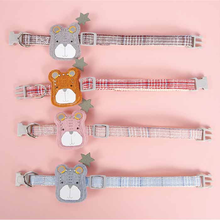 Collar para gatitos o perros pequeños, con reata suave a cuadros y aplique de osito, cierre plástico y aro para colgar la placa