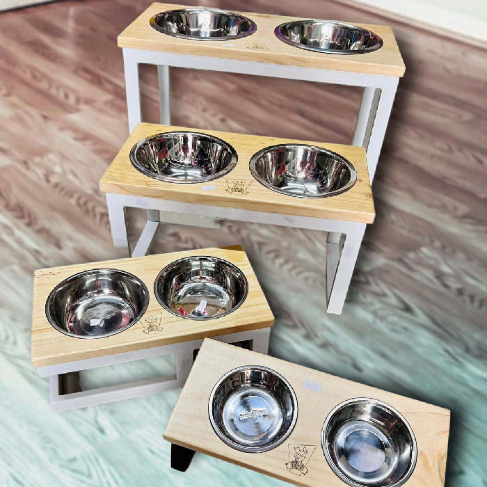 Comedero Doble Alto Madera Y Metal