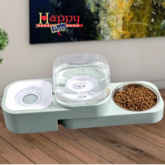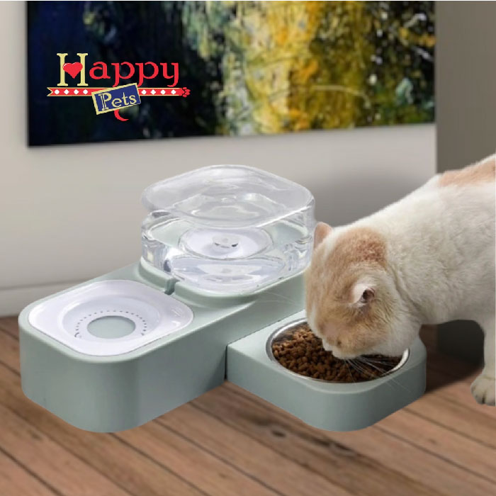 Comedero doble, con tanque de almacenamiento acrílico transparente paa agua, del que va bajando el contenido por gravedad a medida que el peludo va bebiendo y el plato se va llenando solo, plato en Acero Inoxidable y tapa antireguero. Es muy práctico y fácil de usar, ideal para quienes no pueden estar en casa para servir el agua sus mascotas. Se puede desarmar totalmente para lavarlo. Apto para gatos y perros pequeños y medianos.