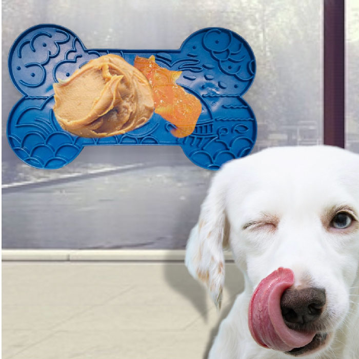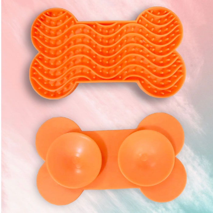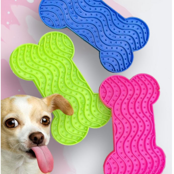 Comedero para adherir a la pared o al piso y dar alimento a nuestra mascota; Con relieves en toda la superficie para mejorar la alimentación y evitar el estrés y reflujo de los peludos a causa de comer tan rápido y en una mala posición. Ideal para alimentos del tipo de untar como mantequilla de maní, yogures y fruta macerada. Adherente a variados tipos de superficies planas.