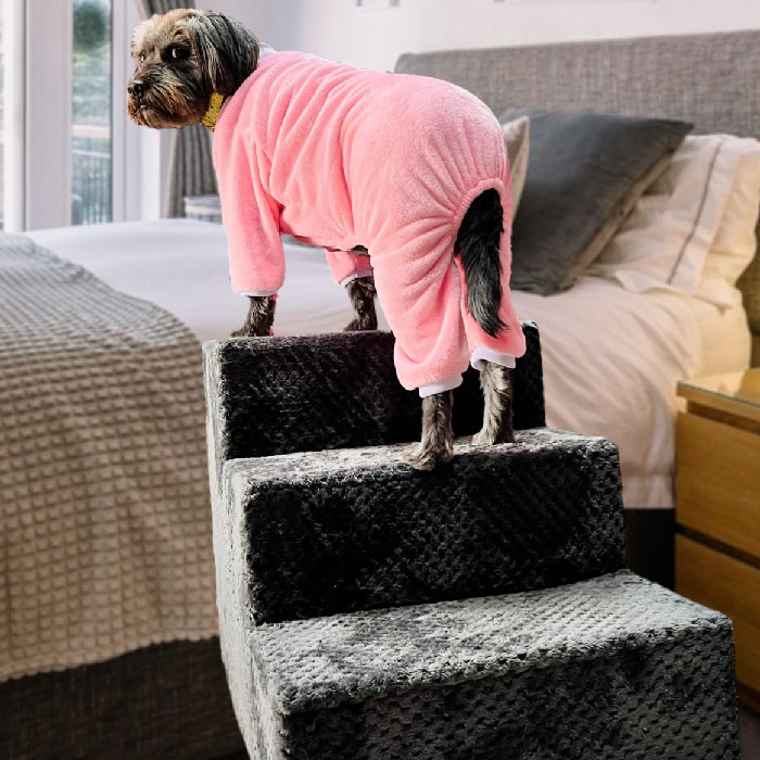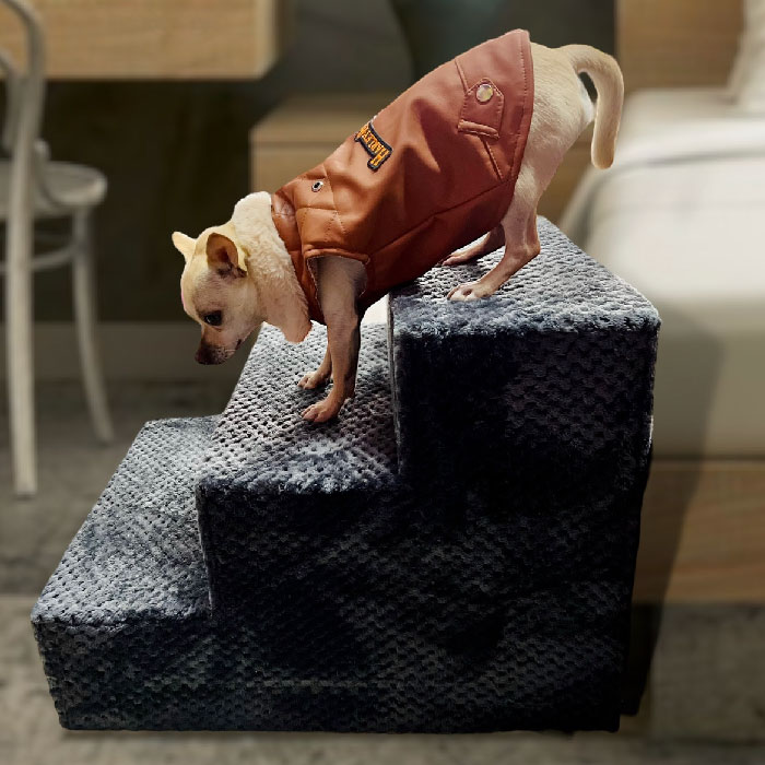 Esta escalera o rampa ayuda a los perros o mascotas pequeñas a subir con tranquilidad y seguridad.
