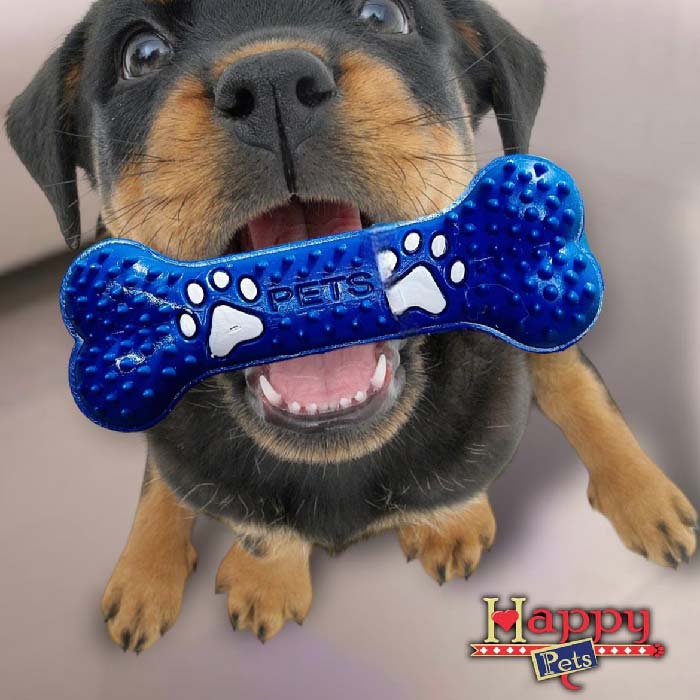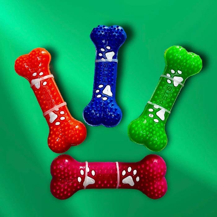 Hueso pequeño macizo, con texturas, para peludos juguetones y mordelones; ideal para cachorros que están cambiando de dientes y quieren morder cosas texturadas para calmar sus encías; por su textura ayuda también a limpiar los dientes y fortalece sus mandíbulas. Material liviano, altamente resistente, fácil de limpiar. Apto para perros pequeños y medianos.