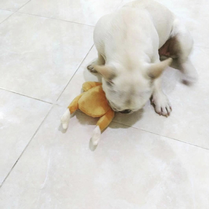 Peluche en forma de Pollo Asado, con pito en su interior y tela doble reforzada. Apto para peludos de todos los tamaños. Material suave, resistente, liviano y fácil de lavar en lavadora.
