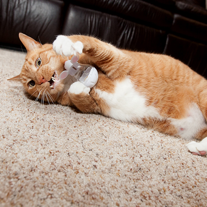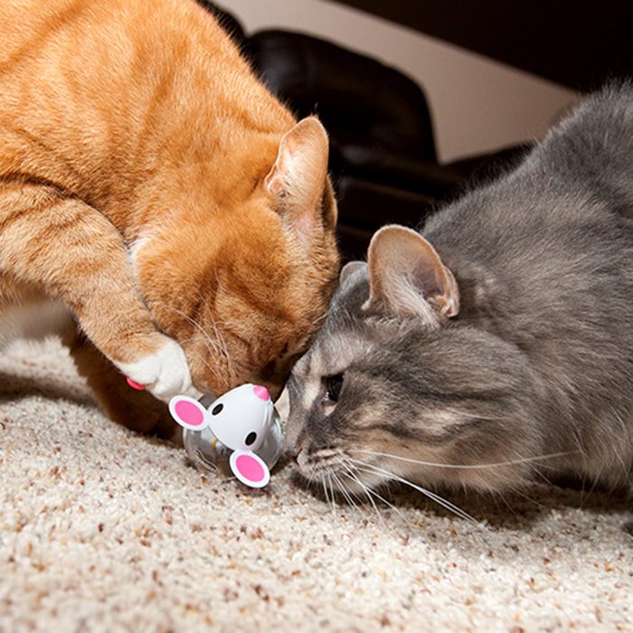 Ratones plásticos huecos que se rellenan con galleticas, con base redonda para que se balancee lado a lado con facilidad y puedan jugara a sacar las galletas; ideal para gatitos juguetones y glotones a los que les gusta jugar a cazar.  Material liviano, altamente resistente, fácil de limpiar.