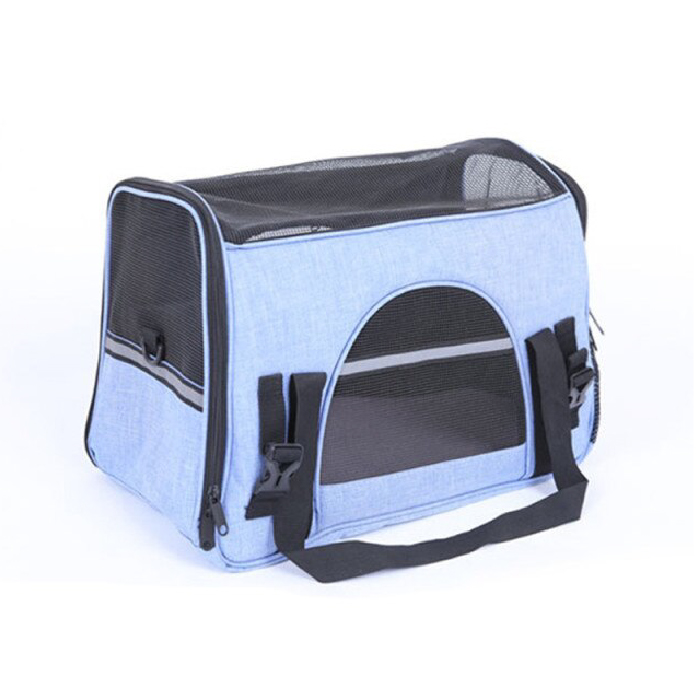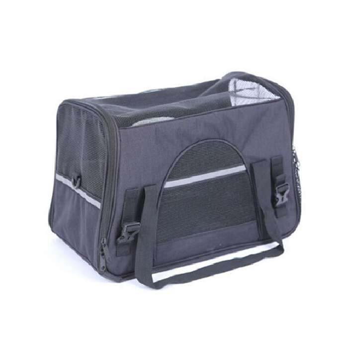Cargador en Lona gruesa impermeable de alta resistencia, con costuras reforzadas, 2 bolsillos, 5 amplios espacios de respiración en malla, puertas y ventanas laterales con cremallera, asas cortas y largas, cinturón de seguridad, base semirrígida para mayor estabilidad, franja frontal reflectiva y correas delanteras para ajustar a los cinturones de seguridad y usarlo como silla de seguridad en el carro. Apto para cabina de avión.