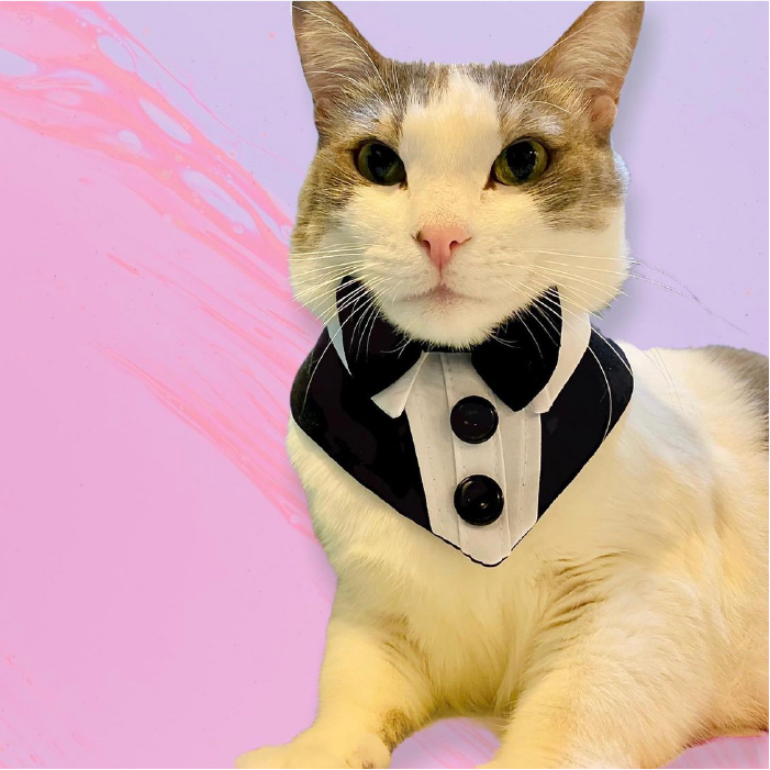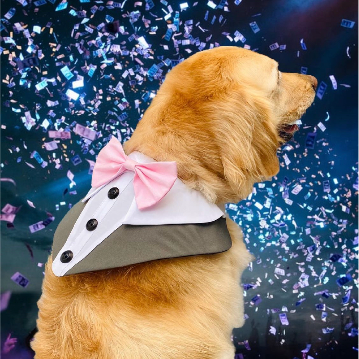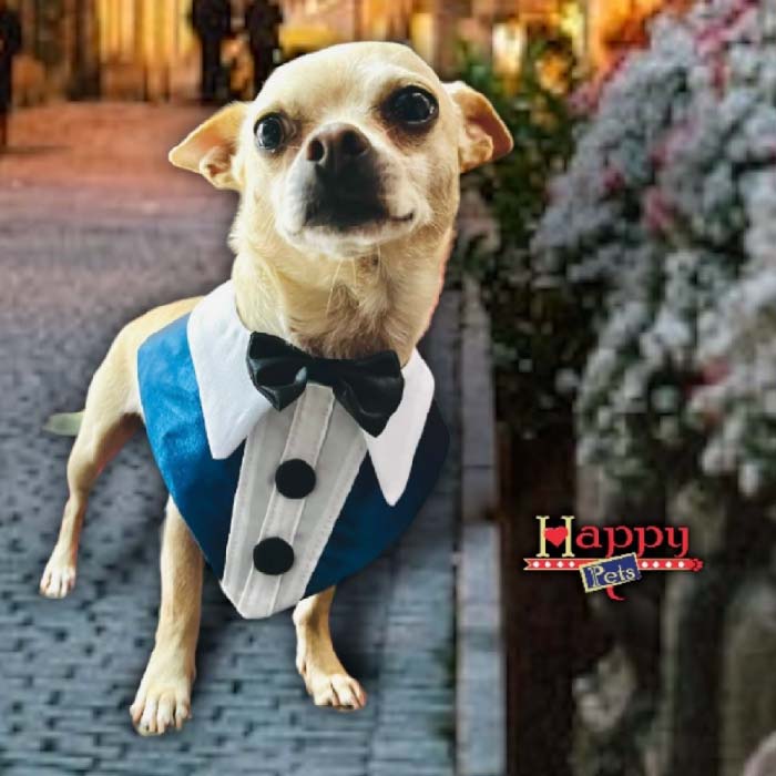 Pañoleta Smoking, disponible en color negro, gris y azul (u otros colores bajo pedido). La pinta ideal para ponerle a tú peludo en una ocasión especial, sin necesidad de vestirlo por completo. Fácil de poner, ligero y muy cómodo.