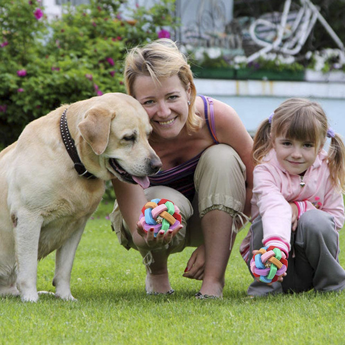 Pelota de caucho entretejida, con tiras cuadradas de colores que asemejan un Tetris, con cascabel en su interior; pelota flexible, texturada y con sonajero, ideal para gatitos y perros juguetones, a los que les gusta jugar a atrapar pelotas y morderlas; por su textura ayuda también a limpiar los dientes del peludo y fortalece sus mandíbulas. Material liviano, altamente resistente, fácil de limpiar. Disponible en 2 tamaños, S y M.