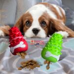 Pelota con forma de futbol americano, mediana, en caucho flexible y pelota de tennis en su interior; ideal para peludos juguetones, a los que les gusta jugar a atrapar pelotas, morder diferentes texturas y hacer sonar sus juguetes; por su textura ayuda también a limpiar los dientes del peludo y fortalece sus mandíbulas.  Material liviano, altamente resistente, fácil de limpiar.