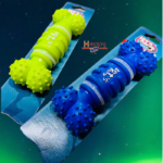 Pelotas pequeñas con orificios, una tiene un cascabel adentro y la otra una pelotica con luces que alumbra en la oscuridad; ideal para gatitos y perros pequeños juguetones, a los que les gusta jugar a atrapar pelotas; por su textura ayuda también a limpiar los dientes del peludo y fortalece sus mandíbulas. Material liviano, altamente resistente, fácil de limpiar.