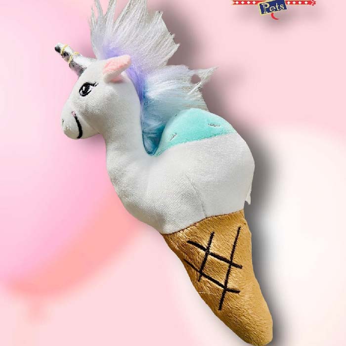 Peluche en forma de Cono de Unicornio, con pito en su interior, peluche texturado y tela doble reforzada. Apto para peludos de todos los tamaños. Material suave, resistente, liviano y fácil de lavar en lavadora.